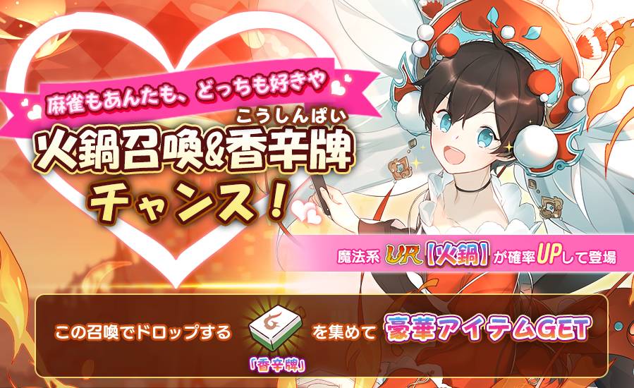 12月13日~12月19日の期間中、【火鍋】の排出率がアップする限定召喚を開催!
